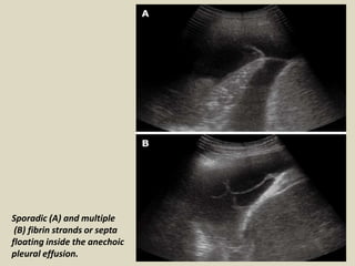 Ultrasound-guided pleural effusion drainage by catheter insertion is a safe and effective procedure. Diverse disease processes result in sufficient fluid accumulation within the pleural space to cause respiratory compromise. Heres a labeled still image that still shows that spine sign.